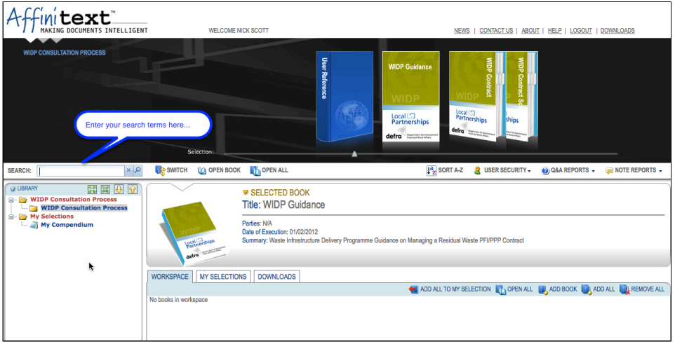 Clicking on the magnifying glass button or pressing Enter will start a search for the search terms across all the books in the library you have access to.