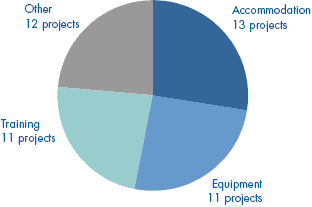 5 | Defence Animal Centre | Redevelopment of new office and residential accommodation, animal husbandry and training support. | Nov 96 | Aug 00 | Jan 02 | Jan 02 | 11.2 | 25 | 2025 | 3.8 | On |