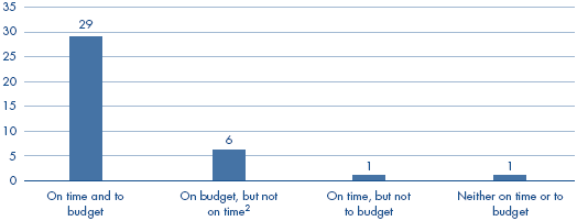 | NOTES 1 In four projects the current members of the project team did not know whether their project was delivered to time and/or budget. 2 One of the six projects (Heavy Equipment Transporter) was delivered early by the contractor. |