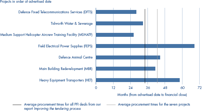 2.13 The Department has established processes for determining the procurement method which it expects to deliver the best value for money, and for deciding whether the project should proceed to contract letting as an approved project. As a result of these processes the Department expects some projects to be abandoned or the form of procurement to be changed. In some cases however, a long period of time elapsed before these decisions were taken on projects which the Department had advertised to the market as potential PFI projects. Further time may be needed if alternative procurement options are then to be pursued. These delays can result in significant costs for both the Department and private sector bidders. They may also affect bidders' strategies for bidding for and pricing future PFI contracts.