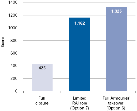 | The Department considered that the option which involved a limited role for RAI (Option 7) offered the best value for money. | |