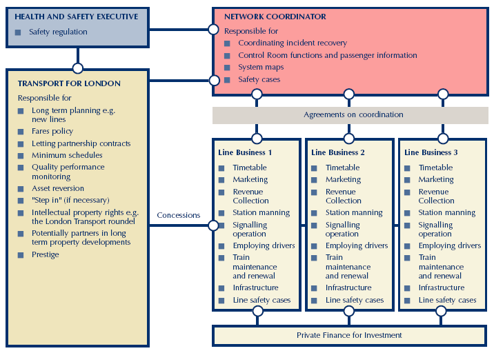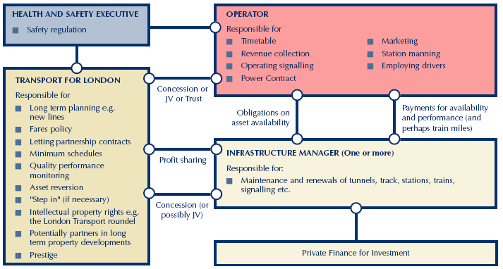 1.10 Price Waterhouse identified constraints on a partnership based on public ownership and private debt funding. The report cited prevailing public expenditure rules that would classify the debt as public sector debt. The report also stressed concerns that the capital markets would have to develop more confidence in the public ownership arrangements. Price Waterhouse suggested that the option would require the creation of a long term framework for fares (see Figure 3(a)) and realistic performance targets. This would have been necessary to give the markets comfort that London Underground's revenue base was predictable and protected from cuts in funding. Even so, Price Waterhouse doubted that London Underground would be able to raise the necessary funds without Government backing for debt repayments, something the Government was not prepared to offer.