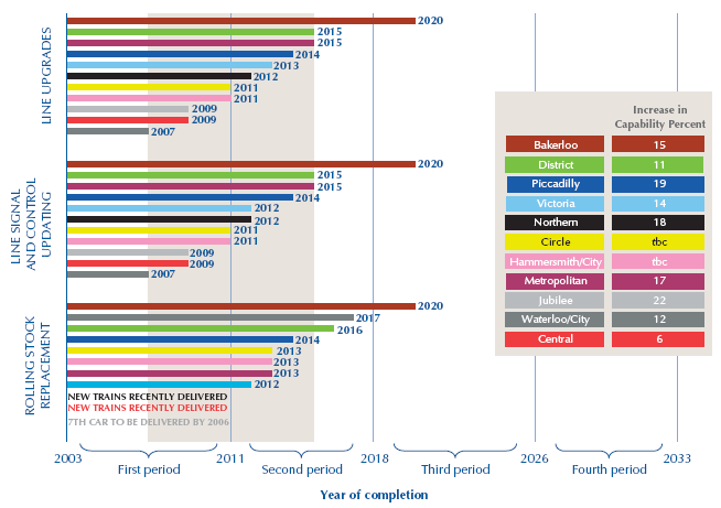 The private infracos have promised to deliver capability improvements across the Tube network, with most enhancements - partial and full upgrades - scheduled to be completed between 2007 and 2015. |