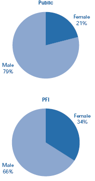 | The sex of staff in public prisons compared with PFI prisons |