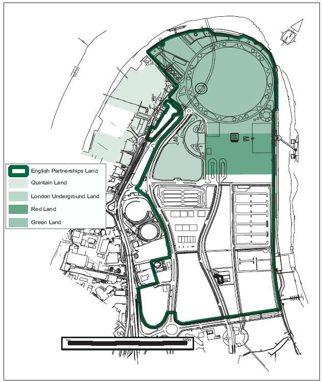 English Partnerships own most of the land on the Peninsula; important areas are owned by London Underground Limited and by private companies.