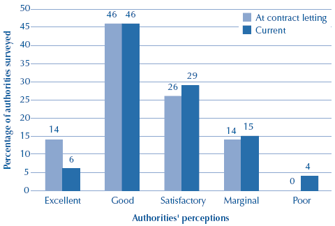 | This is based on 98 authorities who gave us their perception of value for money at the time the contract was let, as well as at the time the survey was completed.