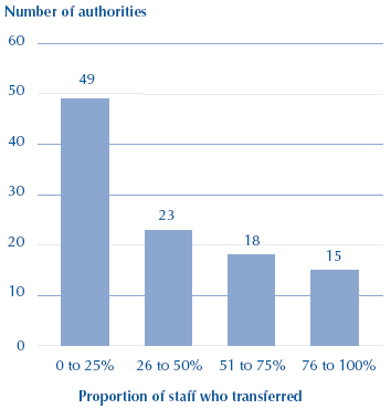 2.11 Our survey showed that 47 per cent of authorities transferred less than a quarter of the staff employed on the contract procurement team to the contract management team. Only 14 per cent of authorities transferred more than three quarters of staff with experience of the project (Figure 14).
