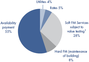1 The value testing relates to the facilities management services such as catering, cleaning and portering ("soft FM services") which have been subject to benchmarking. These services are 28 per cent of the total annual cost of the PFI contract. | |