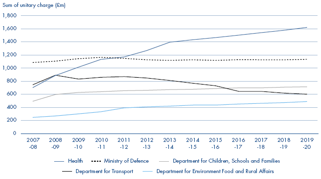NOTES The unitary charge figures for Defra comprise: 1 Unitary charge payments for waste projects by local authorities (98 per cent of total payments to 2020). 2 Three small (non-waste) PFI projects: (2 per cent of the total unitary charge payments to 2020). |
