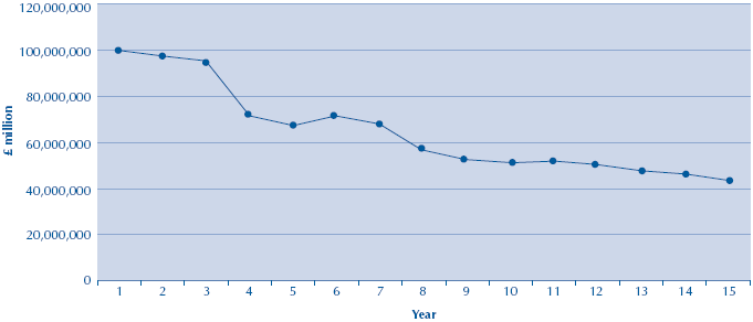 1.23 NS&I would not have been able to afford the business transformation proposed by SBS. The contract delivers everything that was included in NS&I's operations budget before April 1999 plus many new activities such as the call centre and the data warehouse. The annual NS&I operations budget was about £100 million in cash costs before the partnership. During the first three years of the contract, NS&I paid unitary charges of £102.2 million, £101.6 million and £100.9 million respectively. The unitary charge decreases to £72 million in the fourth year, with further decreases over the remaining contract term as shown in Figure 4.