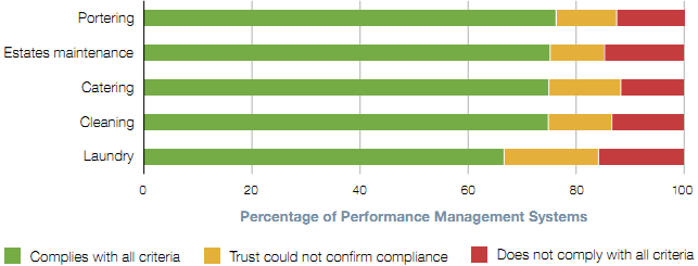 We asked Trusts to assess their contractual targets for maintenance, cleaning, catering, portering and laundry against the following criteria: Objective and measured - i.e. based on a quantifiable standard of performance that does not require judgement; Focused - i.e. a set of only a few indicators which set clear incentives and priorities and not a long list of unconnected indicators; Detailed - i.e. set out in sufficient detail to capture the required service level; Auditable - i.e. you have a way of checking that the data provided by the contractors against the indicator is accurate; and Provide the right incentives - i.e. incentives capture all the required tasks and subcontractors cannot meet targets by doing things you do not want. Source: National Audit Office survey |