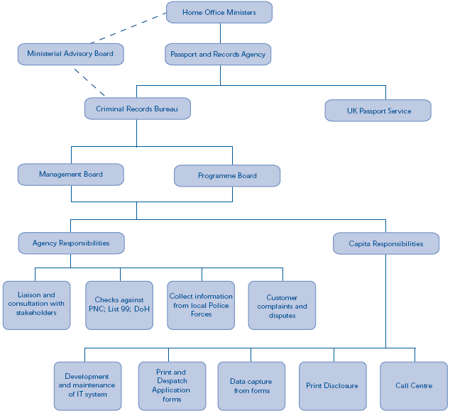 | Organisational Structure of the Criminal Records Bureau during development and implementation |
