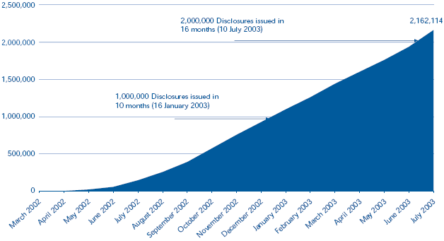 | The graph shows the cumulative workload of the Bureau to July 2003.