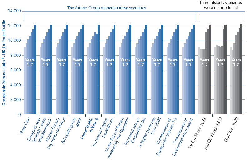 | The Airline Group modelled a range of scenarios to demonstrate the financial robustness of their bid. None of them included a severe and protracted hiatus in traffic growth to the extent seen in previous decades.