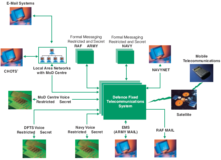 Many of the Ministry's other telecommunications networks are connected to the Defence Fixed Telecommunications System