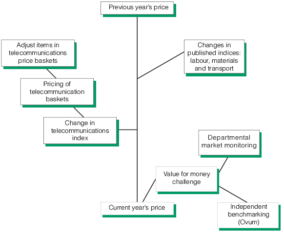 | This figure shows that the prices of telecommunications services are adjusted depending on changes in specified indices (see Appendix 6). In addition, the Department may make value for money challenges, informed by benchmarking and market monitoring.