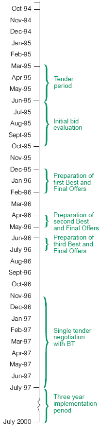 Invitation to tender was issued to BT and Racal for Best and Final Offers (para 2.15).