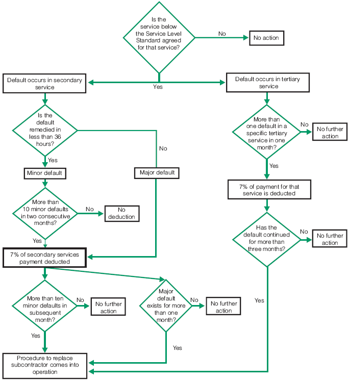 If service defaults are not remedied within a specified period, the contractor responsible can be replaced | |