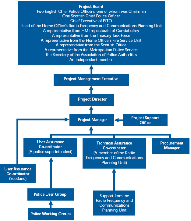 2.7 All key advisers (see Figure 8) were appointed following competitive procurements. The project team assessed the advisers' familiarity with radio communications technology, the emergency services environment and the then emerging use of the PFI, as well as their general expertise.