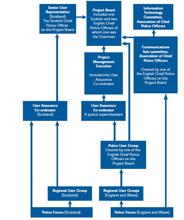 2.36 Throughout the procurement PITO kept chief police officers informed of progress. This was achieved through the inclusion of two chief police officers on the project board, one of whom was chairman, presentations to the Association of Chief Police Officers and regular written updates from the project director (Figure 12 shows the organisation structure of the police involvement in the procurement). Although forces were generally supportive of the project, they did express concerns about the affordability of Airwave. During the negotiations, PITO attempted to use these concerns to gain more competitive pricing from O2. While all parties accepted that the proportion of the police budget required to pay for a modern digital radio service would be more than the then current allocation, it was assumed that O2 did not know what percentage would be acceptable. This strategy unravelled, when in June 1999, PITO considered that O2 had gauged this level to be two per cent of the police budget.