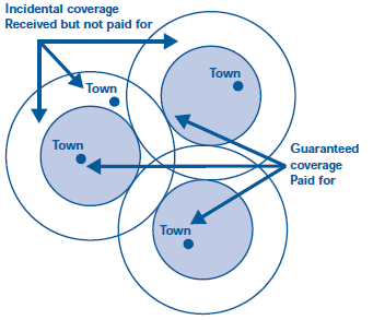 3.7 Unlike any other radio system or mobile phone system, Airwave will provide contractually guaranteed access and coverage. Figure 16 shows an example of areas where coverage is guaranteed as well as areas where coverage is obtained but not paid for and therefore not guaranteed. The coverage level is determined by the contract and is measured according to a complicated statistical model.