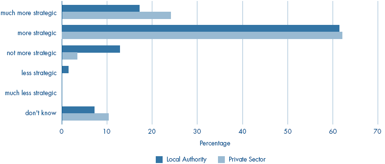 Answers to "In your opinion, does your local BSF programme lead to a more strategic procurement of infrastructure, compared to previous school capital funding programmes, in a way which will lead your local school estate to be better adapted to 21st century education?"