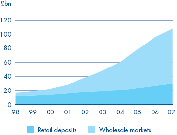 2 | Growth in Northern Rock's sources of funding 1998 to June 2007 |