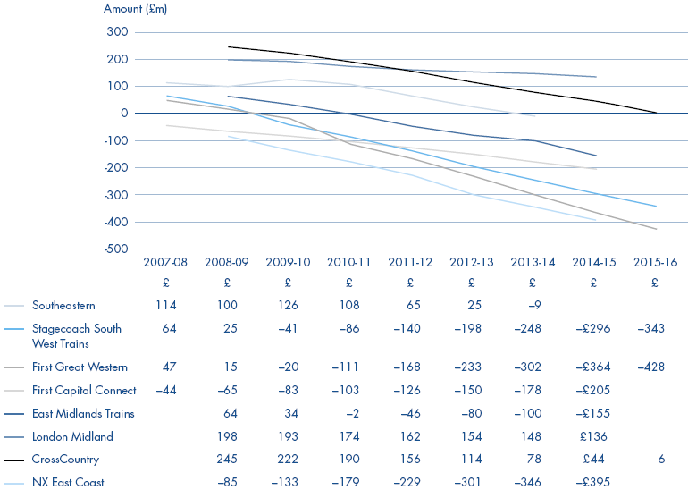 Direct subsidy is paid to train operators and a grant is also paid to Network Rail and provided to support new investment programmes.