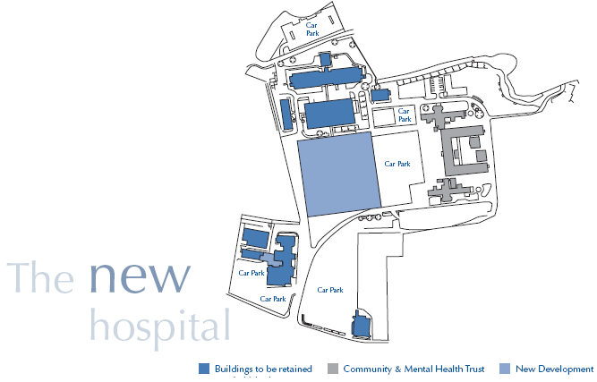 In the new, 434 bed redevelopment there will be no need for electric ambulances to ferry patients around, for duplicate diagnostic suites (X-ray, and Ultrasound) or pharmacies. A new central access point will be created with improved facilities for the disabled and, by focusing on the logical relationships between services, the flow of care will be enhanced. The buildings that are retained from the old site will be refurbished. |