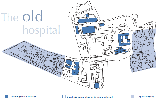 The old site is large and unwieldy. The lay-out of interdependent services such as Accident and Emergency (A&E), theatres, and rehabilitation units. Patients can spend up to 15 minutes in an electric ambulance being moved around the site. Some essential services, such as X-Ray, are provided several times at different locations, leading to inefficient staffing and additional costs. Much of the dilapidated building stock on the site is over 100 years old and in recent inspections the site as a whole has failed to meet its statutory fire and health and safety obligations. |