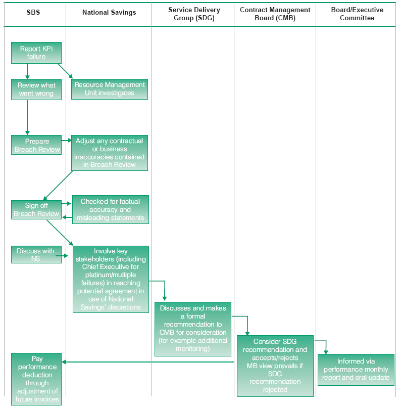 This figure shows that National Savings and SBS have agreed a process for determining performance deductions | |