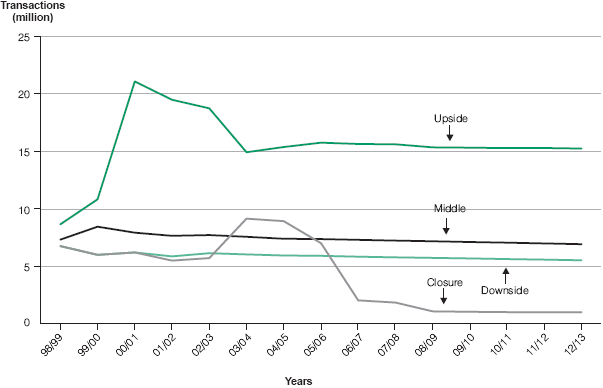 3.12 National Savings closely defined the transactions on which a unitary charge by a private sector partner would be based. Although individual products may encounter sharp fluctuations around their launch and anniversary dates, the overall volume of transactions each year tends to be stable. Moreover, even in the event of declining financing requirements, the Treasury would normally expect National Savings to plan on the basis of a steady state of funding. This is to assist business planning, in a competitive market, over the medium term and also because the gilts market is normally better placed to cope with changing financing requirements.
