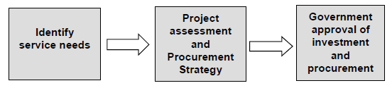 Generally, the procuring agency will initially identify service-related infrastructure needs, then define specific projects and undertake a thorough analysis of the expected net benefits of the investment, which will inform the investment decision of government. In addition, departments and agencies will undertake an analysis of procurement methodologies to determine the most appropriate method, which in turn will inform the government's procurement decision.