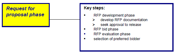 Following the short-listing of bidders during the EOI phase, the request for proposal (RFP) phase is the next key phase in the PPP process and involves the release of the RFP and evaluation of proposals to select a preferred bidder.