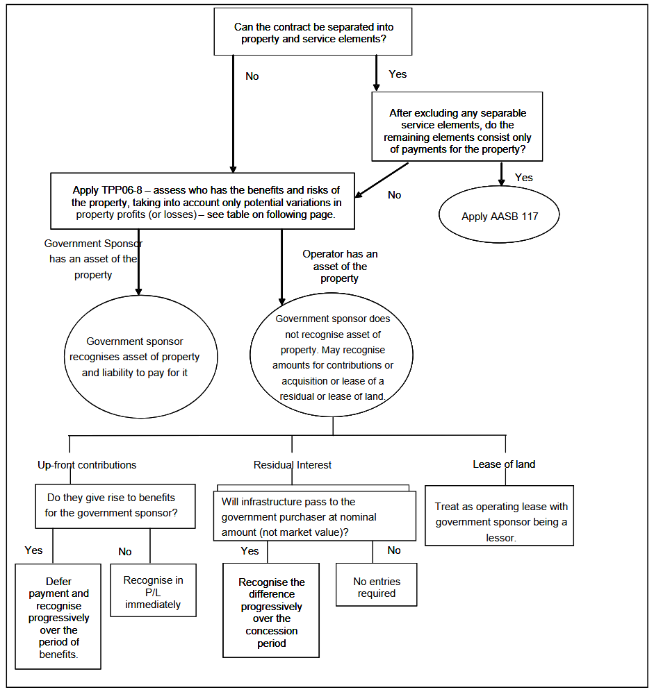 Once any separable service elements have been excluded, PPPs can be classed into those where the only remaining elements are payments for the property and those where the remaining elements include some services. Where the only remaining elements are payments by the grantor for the property asset, the PPP should be accounted for as a lease in accordance with AASB 117 Leases. Where the remaining elements include some payments for services, the PPP should be accounted for in accordance with this guidance.