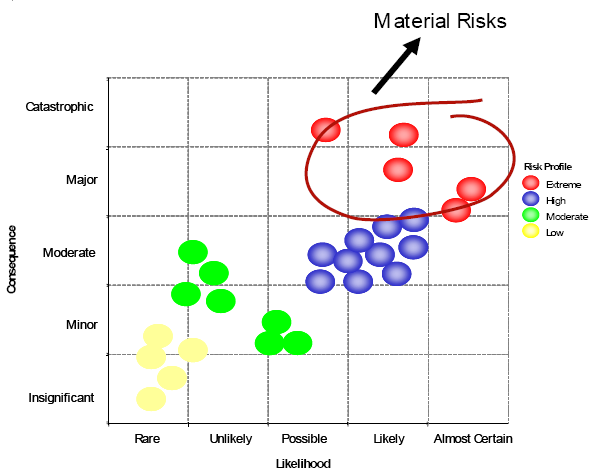 Figure 6-3 provides an example of a matrix which demonstrates the identification of risks by likelihood and consequence: