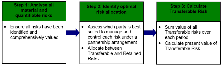Transferred Risks are those that are likely to be transferred to the private sector under the PPP arrangement. The type and number of risks which are classified as Transferred Risks needs to be assessed on a project by project basis.