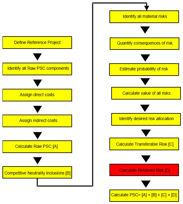 Although both Transferred and Retained Risks are calculated from the same standpoint in a PSC (as the cost to government of holding the risk), they are treated as separate components for the following reasons: