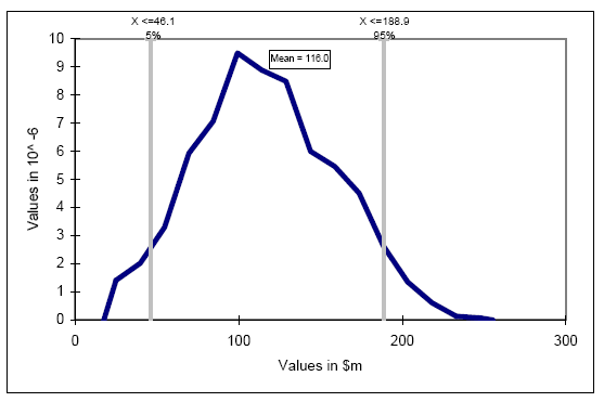 Figure 10-1 illustrates the frequency distribution for Transferred Risk detailing the mean and, for illustrative purposes, the 5th and 95th percentiles.