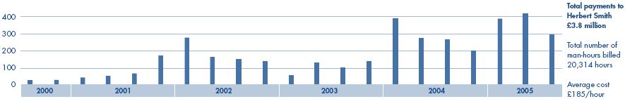 Payments to Herbert Smith (legal advisers) per quarter year (£,000)