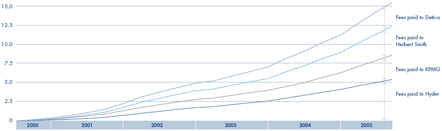 The cumulative spend on the four advisers (£ million)