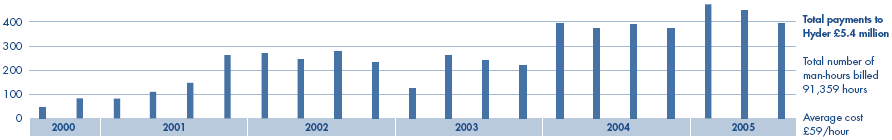 Payments to Hyder (technical advisers) per quarter year (£,000)