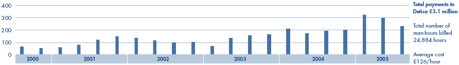 Payments to Detica (technical advisers) per quarter year (£,000)