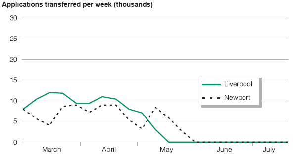 Applications were transferred from the Liverpool and Newport offices, until transfers stopped in May. | ||
