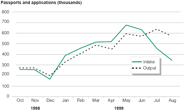 3.9 The additional staff did not immediately ease the pressure on the Agency. Whilst additional casual staff were recruited quickly to tackle basic clerical tasks in place of staff who had been promoted to passport examiners, the Agency needs two and a half months to recruit, train and obtain security clearance for new examination staff. By early July, the Agency had trained an additional 275 passport examiners since the beginning of the year, with plans to train a further 50 before the end of the year. It was only in July that the Agency's output exceeded the volume of applications received.