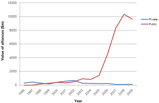 Figure 2.4: The use of alliancing in public and private sectors 4
