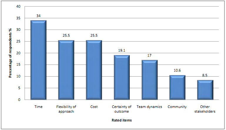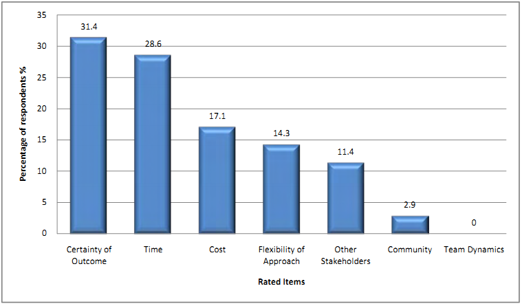 ■ Non-owner participants did not rate certainty of outcome (19.1%) very highly in comparison to the owners' view that this was most important.