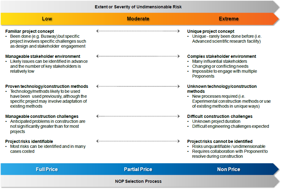 The following diagram provides further guidance in the use of full, partial and non-price processes where the project risks are undimensionable.