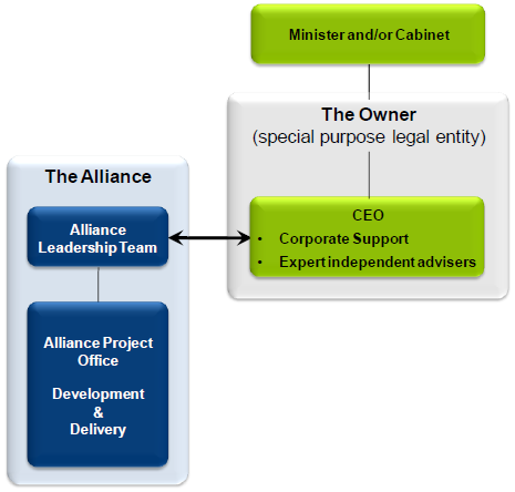 The role of the special purpose legal entity (e.g., a department may establish a statutory authority to govern its major alliance) is to assume the role of the Owner.