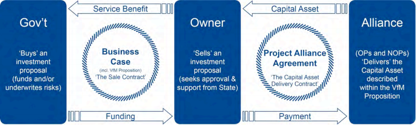 The VfM concept is central to public sector procurement decisions and is applied to assist government decision making on funding priorities. The parties involved in the VfM proposition in the alliance context can be illustrated as follows: